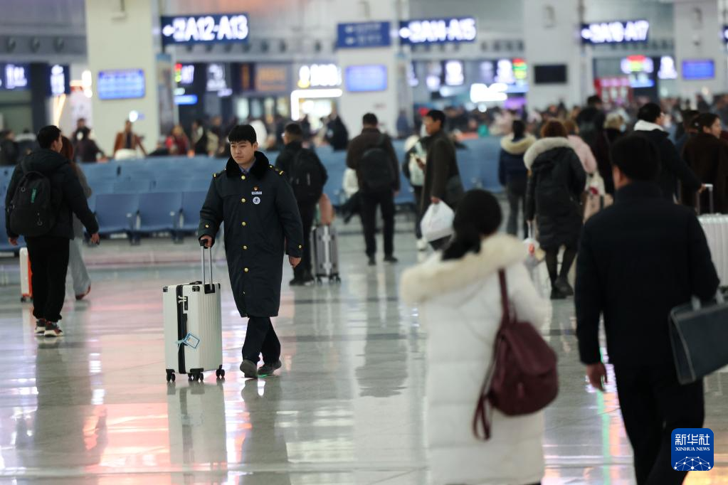 2月8日,中铁快运兰州西站销售部员工罗鹏将旅客行李送出站。 “你不用带着大大小小的行李急着去电梯办理登机手续,而且如果提前预约,可以保证你的行李会直接送到车站。”乘坐高铁回家的乘客吴翔在兰州西站候车室A1入口旁的“光旅”自助柜台前输入取车码时感叹道。兰州西站候车室,A1出入口旁设有“轻装”自助柜台。醒目的标识可以帮助乘客快速找到服务点。通过智能系统,乘客可以进行“一键代码下车、一键上车”,整个流程便捷高效。据介绍,为解决旅客出行问题针对笨重、难以携带的行李,铁路部门从1月15日起扩大了“轻出行”服务测试范围,“轻出行”测试站数量已达111个地点。旅客通过铁路12306客户或微信小程序“中欧班列”提前订票,可享受上门提货、站场送站、车站提货的全流程服务,上门提货实现“人货分离,轻出行”,减轻了负担,增加了春运的温馨感。新华社记者 陈斌 供图