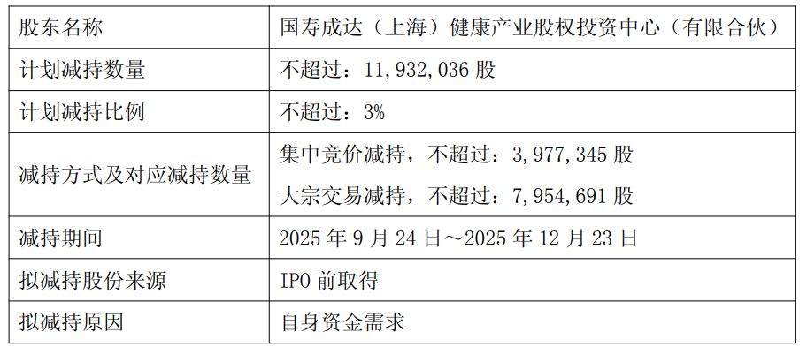 中国经济网络北京,9月3日新闻Novizan(688105.sh)透露了昨晚宣布减少股东行动的计划,股东的行为超过其行动。由于其自身的资本需求,Guoshou Chengda(上海)公司资本投资行业的股东(以下名称为“ Guoshou Chengda”)计划通过集中的Block Block Transactions和Eversions和优惠来减少公司的股份。宣布还原计划。其中,如果您打算通过集中招标减少持股,那么连续90天,股票总数将不超过公司总股票的1%。如果您计划通过交易将持股减少到Granel,则股票总数将不超过公司第90 CO股票的2%连续一天。如果公司在先前股票减少计划的实施期内(2025年9月24日至2025年12月23日)的实施期内有奖金诉讼,资本预订转换或行动分配的变化,则上述措施数量将进行相应调整。中国生活成笔股拥有30,957,960股novizan股票,占公司总股票资本的7.78%。上述所有股票都是在首次公开报价和公司列表之前收购的,销售和上市限制是在2022年11月15日建造的。发起人(主要保险公司)是Huatai United Securities Co.,Ltd。扣除发行成本后,收取的资金净额为20.9亿元人民币。 Novizan筹集的资金净额为9.07亿元人民币。在2021年11月9日之前揭示的传单表明该公司计划筹集122亿元人民币。 Novizan首次公开报价的总发行成本总计913.78亿元,以及Huatai United Secureities Co.,Ltd。获得了726.332亿元的赞助和订阅成本。根据诺威赞(Norwizan)出版的OPI科学技术创新委员会的启动,赞助商是相关的子公司Huatai Innovation Investment Co.,Ltd。(以下简称“ Huatai Innovation”)。 Huatai发资股份的限制为24个月,并且限制是从本提议中发行的诉讼出现在上海证券交易所的日期起。